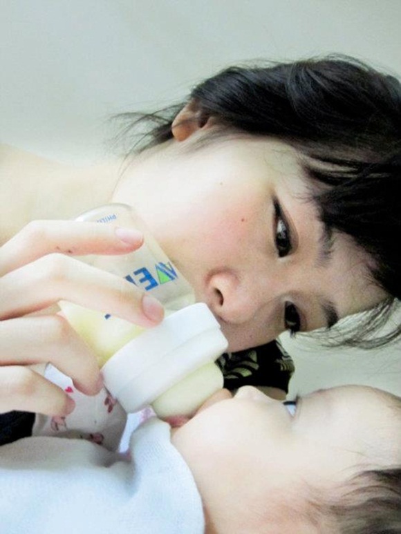 Mẹ Diệp Chi đang cho Sumo uống sữa đấy!