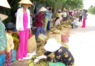 Hiện giá sầu riêng khổ qua được nông dân bán tại vườn khoảng 12.000 đ/kg, sầu riêng cơm vàng hạt lép khoảng 35.000 đ/kg. Riêng sầu riêng Mongthong được thương lái mua với giá 38.000 đ/kg để xuất tiểu ngạch sang thị trường Campuchia với số lượng lớn và ổn định.