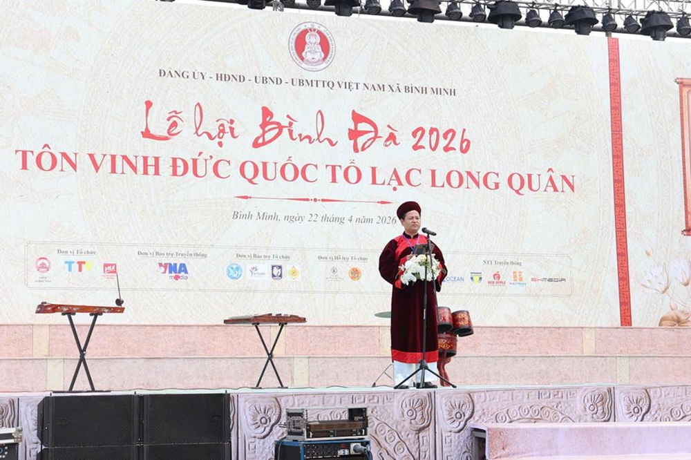 Sáng 22/4 (tức mùng 6 tháng 3 năm Bính Ngọ), tại Đền Nội Bình Đà, Lễ rước, tế và dâng hương Đức Quốc Tổ Lạc Long Quân được tổ chức trang nghiêm trong khuôn khổ Lễ hội Bình Đà 2026. Nghi lễ thiêng liêng đã thu hút đông đảo nhân dân địa phương, du khách thập phương và cộng đồng người Việt cùng hội tụ, thành kính hướng về cội nguồn dân tộc.