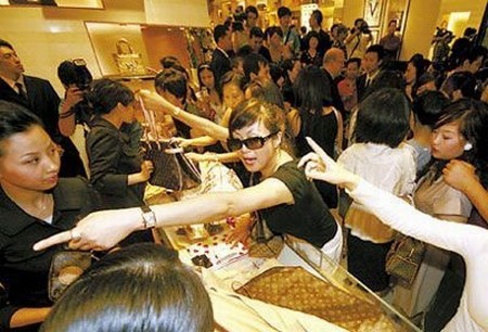 Người Trung Quốc chen chúc mua sắm trong một cửa hàng Louis Vuitton, cảnh tượng như trong ngày giảm giá của Walmart ở Mỹ