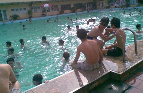Anh Trần Mạnh Trường (Triều Khúc, Hà Nội) cho biết “ở nhà trọ nóng quá, không chịu nổi sức nóng của “lò bát quái” nên anh Trường đành trốn nắng bằng cách ngâm mình trong nước. Mặc dù, bể bơi không được vệ sinh, nước hơi mùi clo nhưng vẫn phải ngâm mình vì quá nắng. Một huấn luyện viên tại bể bơi này cho hay mặc dù chưa vào mùa hè nhưng hiện nay vé đăng ký học bơi đã đông nghẹt. Những năm gần đây không chỉ có người lớn đăng ký học bơi mà cả trẻ em cũng đăng ký học bơi nhiều.