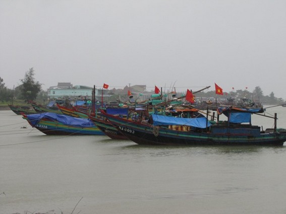 Tàu cá ngư dân tránh bão tại các âu thuyền ở Cửa Hội