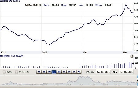 “Cuối tuần, thị trường có phiên tăng điểm hồi phục trở lại sau 3 phiên giảm điểm mạnh. Chỉ số VN-Index tăng 0,45 điểm lên mốc 432,11 điểm với 105 mã tăng giá, 59 mã giữ tham chiếu và 147 mã giảm giá.