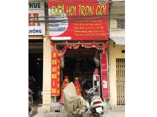 Nhiều cửa hàng chuyên cưới hỏi trọn gói cho ra đời dịch vụ “độc nhất vô nhị”: cung cấp “diễn viên đóng thế” vào vai bố mẹ trong đám cưới với chi phí dao động từ 2 đến 5 triệu đồng một người. Một cửa hàng nhỏ nằm khuất trong phố N.K, Hà Nội có diện tích chưa đến 20 m2, bên ngoài chỉ treo tấm biển nhỏ "Cưới hỏi trọn gói".