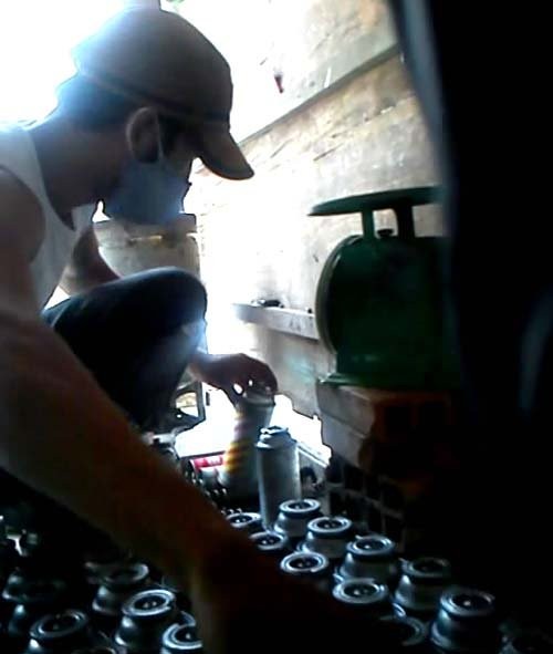 Dưới ánh đèn điện tù mù, bà Phấn nhanh tay thực hiện các thao tác lật ngược bình gas và nối ống dẫn từ mâm chiết qua bình gas lớn bắt đầu màn sang chiết. Gas từ trong bình lớn tràn qua bình mini phát ra những âm thanh “phì, phì...” nghe ghê sợ. Có lúc hở van, khí gas tràn ra ngoài bốc mùi hắc nồng nặc đến nghẹt thở. Đến hơn 1g sáng 23-3, toàn bộ 157 bình gas mini được sang chiết đợi nhập cho mối và bán lẻ.