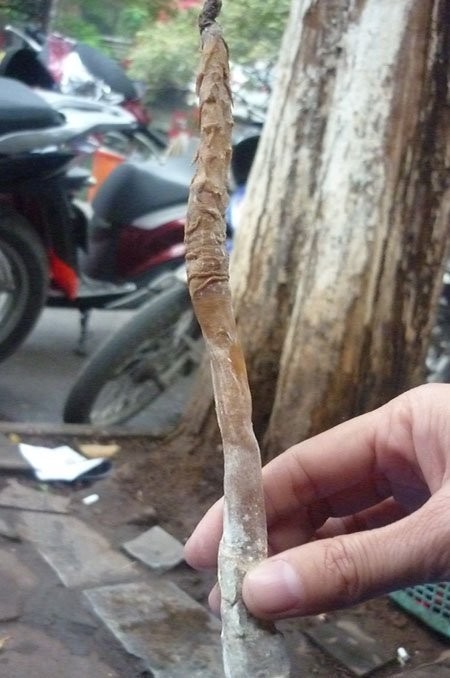 Theo ông Kha, pín bò được sấy khô, thêm màu mè cho có hình thù lạ mắt là đã thành pín hải cẩu. Riêng phần đầu pín tua tủa gai là do người bán dùng mấy rễ cây đẽo gọt cho tua tủa rồi treo bán, quảng cáo đó là pín hải cẩu!