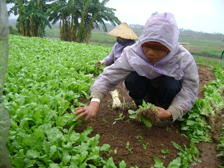 Nông dân thu hoạch rau bán cho thị trường Hà Nội.