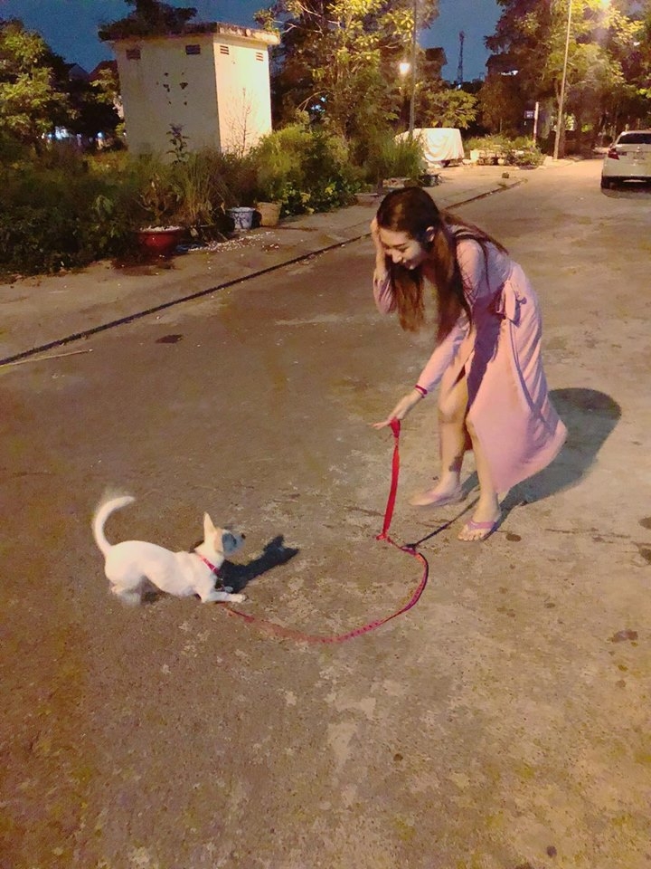 Khổng Tú Quỳnh vui vẻ nô đùa cùng cún cưng sau giờ làm việc căng thẳng.