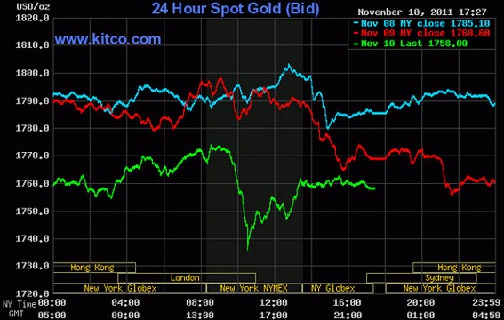 Nguyên nhân cơ bản dẫn đến giá vàng giảm phiên thứ ba liên tiếp này là do sự không chắc chắn đối với những động thái của Italia trong việc thành lập chính phủ thống nhất. Trong khi đó, Hy Lạp cũng mới tìm được thủ tướng tạm quyền - cựu phó chủ tịch Ngân hàng Trung ương Âu châu Lucas Papademos - nhằm đảm bảo Hy Lạp sẽ nhận được các khoản chi cứu trợ mới nhất, và nhằm chuẩn thuận gói cứu trợ quốc tế mới trị giá 130 tỷ euro từ eurozone và Quỹ Tiền tệ Quốc tế.