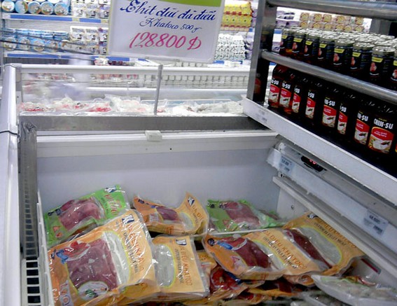 Thịt đà điểu đông lạnh bày bán trong siêu thị Big C giá chỉ bằng 1kg thịt bò. Ảnh: PT