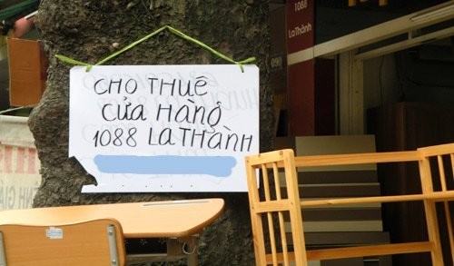 Tương tự, anh Lê Văn Thực ở ngõ 123 Xuân Thủy (Cầu Giấy, Hà Nội) có cửa hàng cho thuê trên đường Nguyễn Hoàng Tôn cũng ngán ngẩm chia sẻ: "Trước tôi cho một khách quê ở Phúc Thọ (Hà Nội) thuê làm cửa hàng buôn bán vật liệu xây dựng, giá 12 triệu đồng/tháng, 6 tháng đóng tiền một lần. Tuy nhiên, giờ kinh doanh ế ẩm, họ trả cửa hàng, mình phải treo biển cho thuê. Đã giảm giá xuống chỉ còn 9 triệu đồng/tháng, đóng tiền thuê 3 tháng một ấy vậy mà đã gần hơn 3 tháng nay mà vẫn chưa tìm được khách thuê".