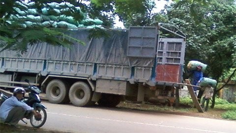 Dây gai được thu gom, chuyển lên xe trước khi bán sang Trung Quốc (ảnh N.T.T)