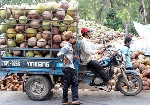 Khi các thương lái Trung Quốc không mua hàng nữa thì giá dừa lập tức giảm mạnh.