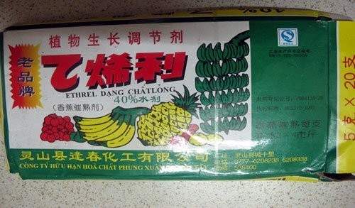 Loại hoá chất này ban đầu chỉ được các tiểu thương dùng cho một số quả, nhưng hiện tại, nó được sử dụng tràn lan từ chuối, xoài, đu đủ đến hồng ngâm, ổi, mít... bởi những lời lãi mà nó mang lại. Điều đáng nói, trên bao bì của tất cả các hộp thuốc này chỉ ghi hạn dùng hai năm kể từ ngày sản xuất, nhưng không hề có ngày sản xuất trên bao bì cũng như trên ống thuốc, chỉ có vài dòng chữ Trung Quốc.