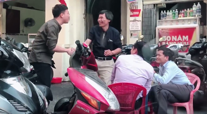 Vậy nên khi phát hiện TS Lê Thẩm Dương đang trò chuyện với bạn bè trên vỉa hè, hai vợ chồng vội xuống xe để chào ông và trò chuyện.