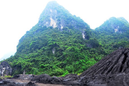 Theo quan sát của phóng viên Dân Việt, ngọn núi nằm ngay sau cảng than, cao khoảng hơn 600 mét. Trên bề mặt của quả núi này có 2 chỗ bị sạt, cây xanh mọc khắp nơi quanh quả núi.