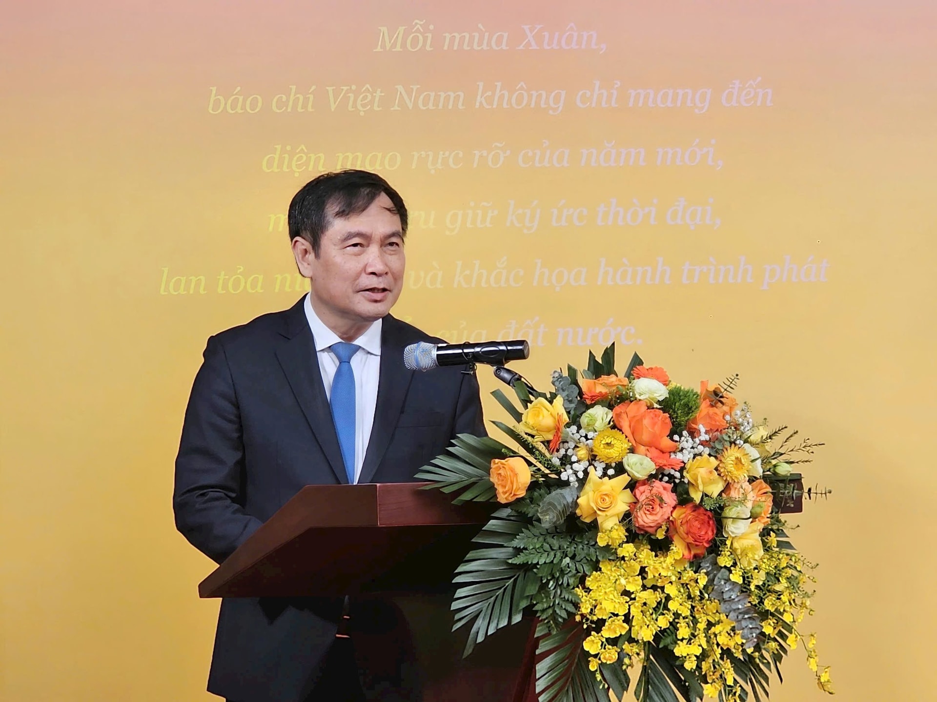 Phó Chủ tịch Thường trực Hội Nhà báo Việt Nam Nguyễn Đức Lợi phát biểu tại lễ khai mạc.