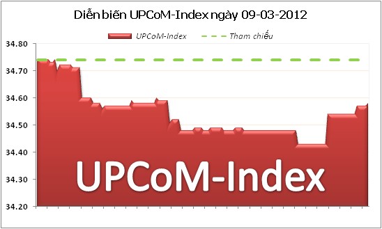 Ngày 09/03/2012, thị trường đăng ký giao dịch cổ phiếu (UPCoM) có phiên giảm điểm thứ 4 liên tiếp. Khối ngoại vẫn bền bỉ mua ròng với 14.700 đơn vị.