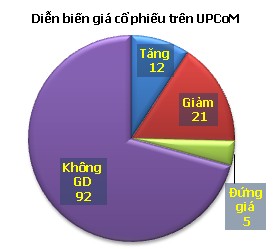 Toàn thị trường có 12 mã tăng giá, 21 mã giảm giá, 5 mã đứng giá và 92 mã không có giao dịch.