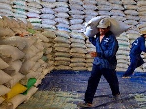 Bốc xếp gạo xuất khẩu tại Công ty cổ phần lương thực Hậu Giang.