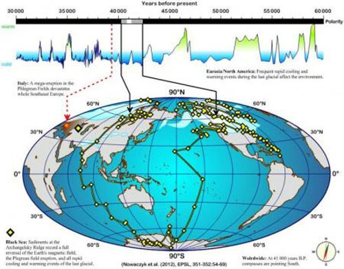 Khoảng 41.000 năm trước, từ trường Trái đất đã một lần đảo cực toàn phần, và nếu lúc đó có la bàn, kim sẽ chỉ về hướng nam chứ không phải hướng bắc.