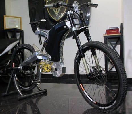 Toàn bộ phần khung sườn, nhông đĩa, một phần vỏ bọc động cơ được thiết kế trên máy tính, sau đó máy cắt CNC có nhiệm vụ biến những khối nhôm hợp kim thành bộ khung sườn chắc khỏe với những chi tiết, đường cắt sắc sảo.